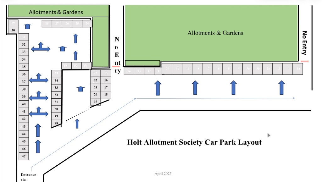 Car Park spaces are available for Members to rent on a monthly basis, with a straightforward rental process and Car Park Member fee (additional to the Allotment Plot Rental Fee). Many of our spaces are used by Members who work in Holt or as dedicated parking for holiday homes owned by Members. Spaces are allocated on a first-come, first-served basis, and rental fees help support the upkeep of the car park and allotment site.